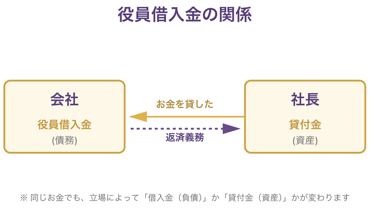 - 社長にとっては「貸付金」(会社に貸し付けたお金)