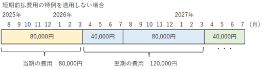 このように短期前払費用の特例を適用しない場合、当期の費用は80,000円となります。