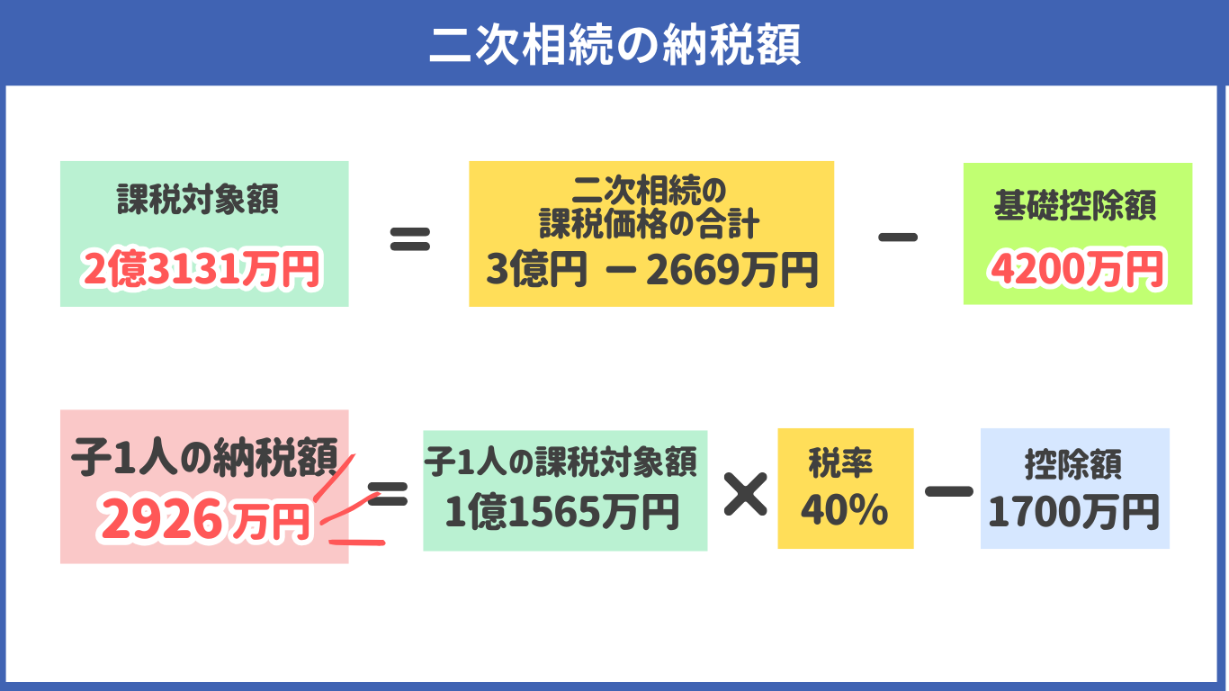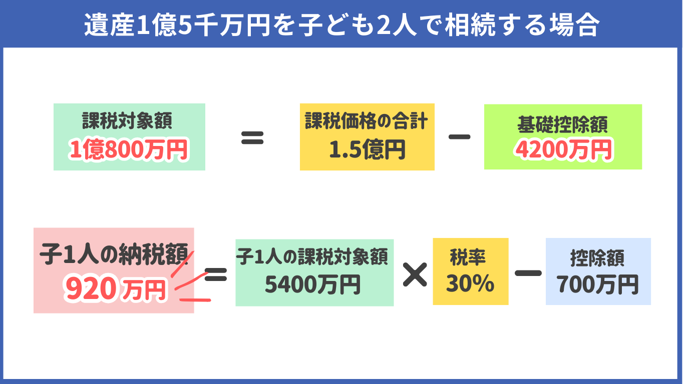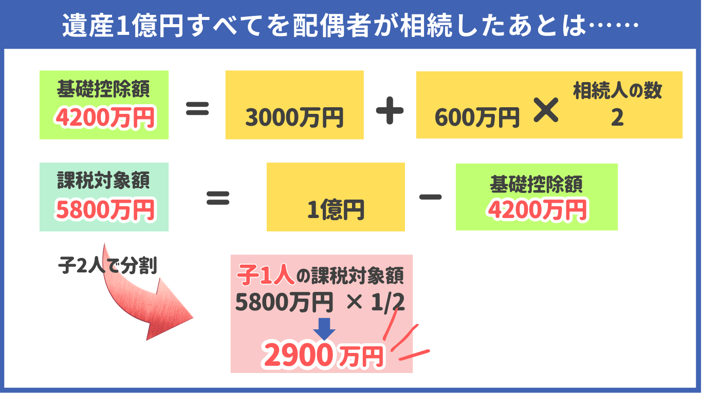 配偶者控除という大きな優遇枠が使えないため、子1人あたりの課税対象額は2,900万円となります。