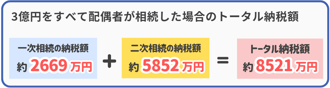 次に、配偶者が3億円すべてを相続した場合の納税額をみてみましょう。